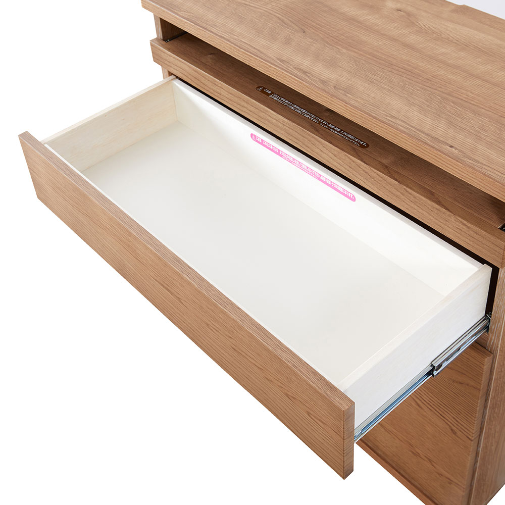 収納部は引出しと可動棚とが設けられています。収納物にあわせて棚板の位置を調整できるので、大きなものから細かなものまで効率よく収納できます。※画像はOK-VN色のイメージです。