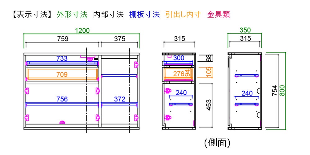 幅1200x奥行350x高さ800