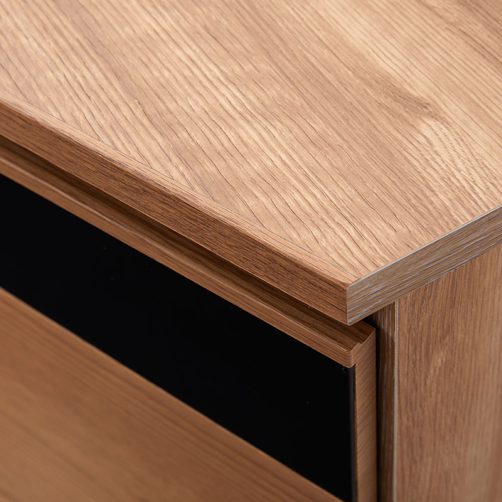 天板:強化シート化粧繊維板、MDF、オーク無垢材(ウォールナット色着色)