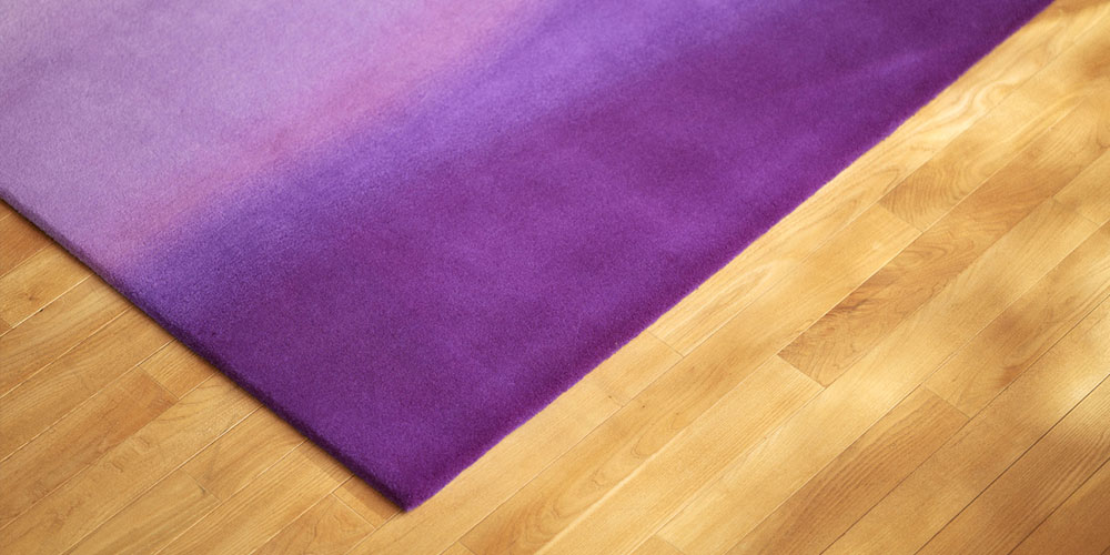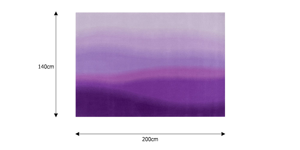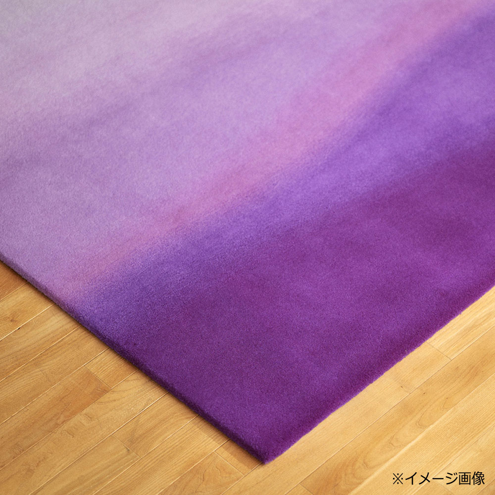 自然がつくり出す空をグラデーションで表現したじゅうたん。しっとりとした紫の織りなすグラデーションは、夏の訪れ前の梅雨空と山々が滲む風景を表現したデザインです。