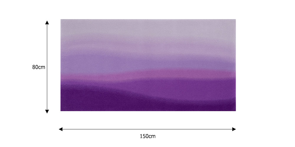 自然がつくり出す空をグラデーションで表現したじゅうたん。しっとりとした紫の織りなすグラデーションは、夏の訪れ前の梅雨空と山々が滲む風景を表現したデザインです。