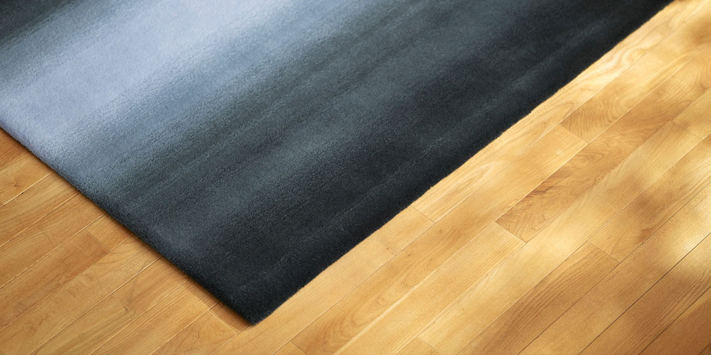 自然がつくり出す空をグラデーションで表現したじゅうたん。暗闇に射す、一縷の光。夜の静けさと移ろいを、黒のグラデーションで表現したじゅうたんです。