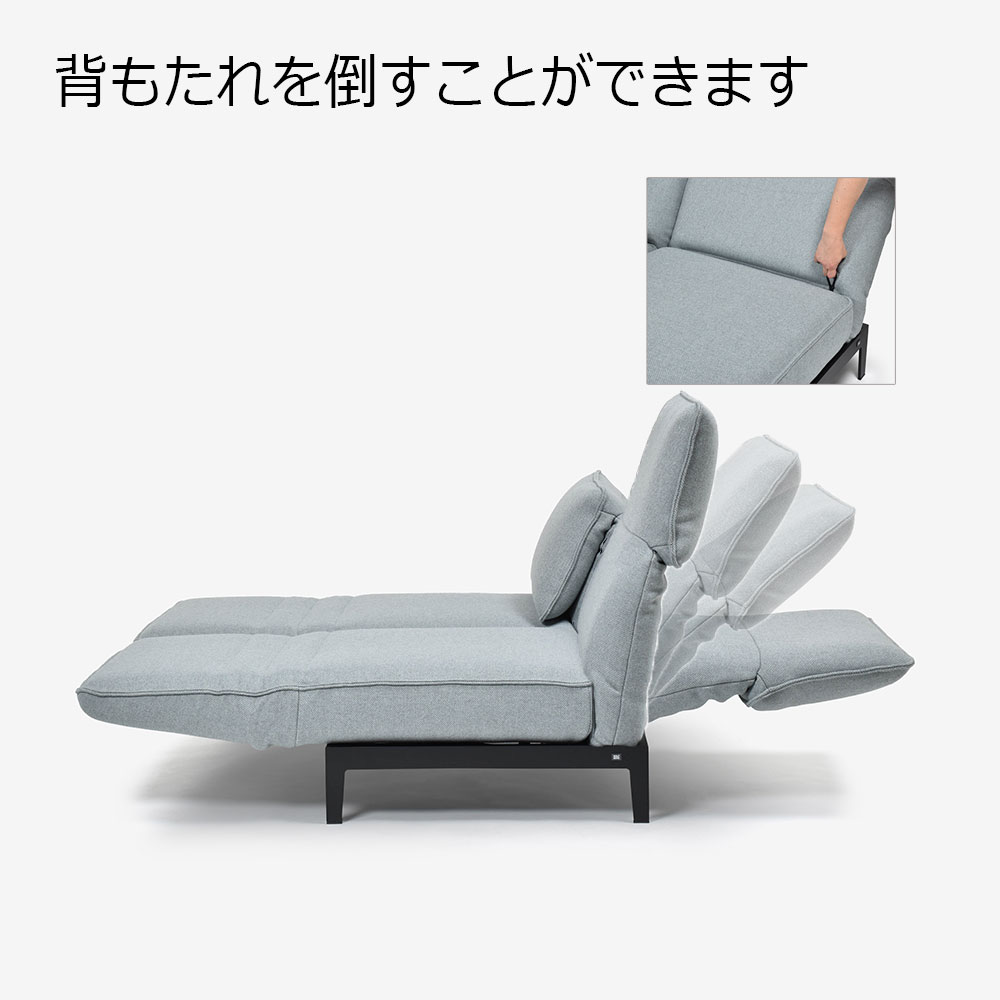 両肘を倒せば横になれるデイベッドに。気軽に軽い睡眠をとりたいときに最適です。