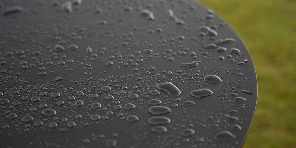 チャコール色の粉体塗装で仕上げたアルミ素材で水に濡れても腐食しにくい仕上げです。