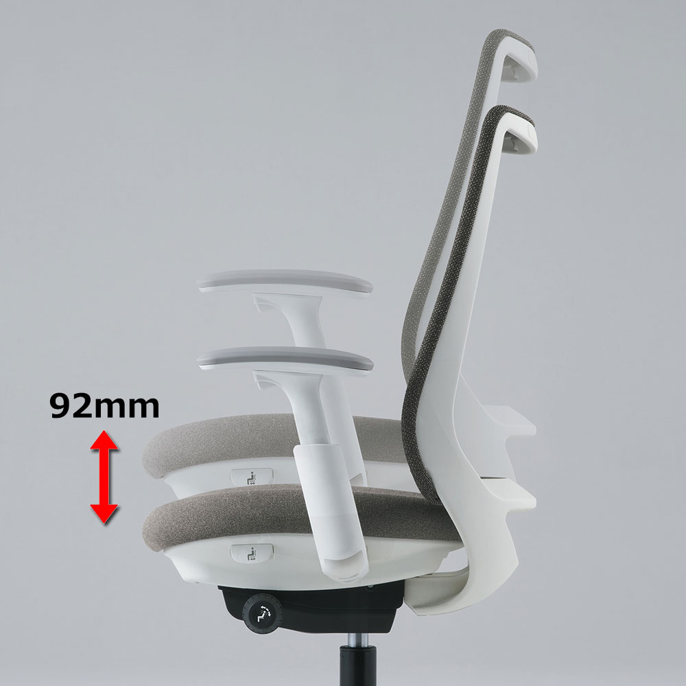 座面右下の操作レバーで、座面高が調整できます。調整幅は92mmです。※画像はイメージです。