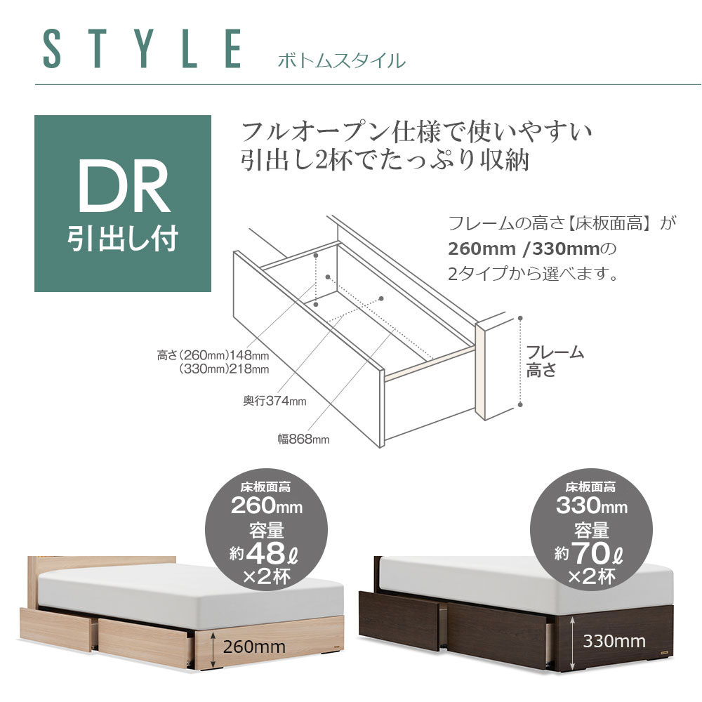 FranceBed(フランスベッド)ベッドフレーム「ファディア FAD-C2 DR」コンセント付き 引出し付き(床板面高2タイプ)すのこ床板 全5サイズ 全3色