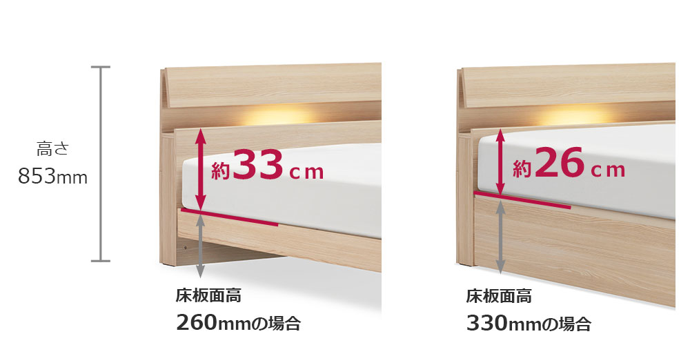 【全サイズ共通】床板面高260mm/330mmの2タイプから選べます。