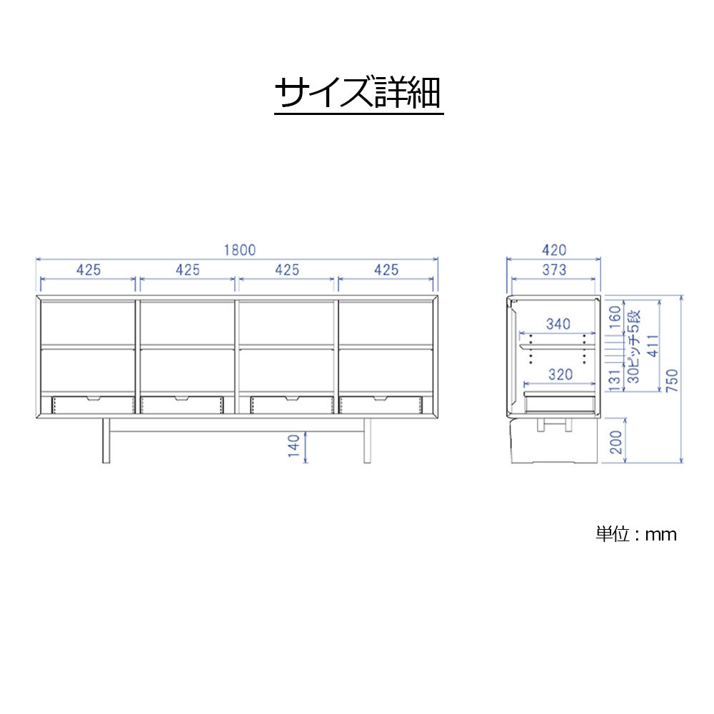 起立木工 サイドボード「FLOW フロー WN/DGY」幅180cm ウォールナット材/ホワイトアッシュ材 ダークグレー色