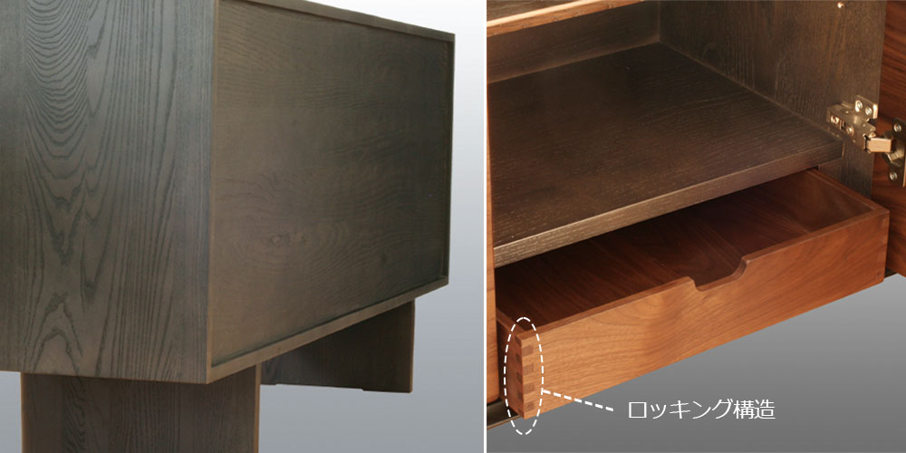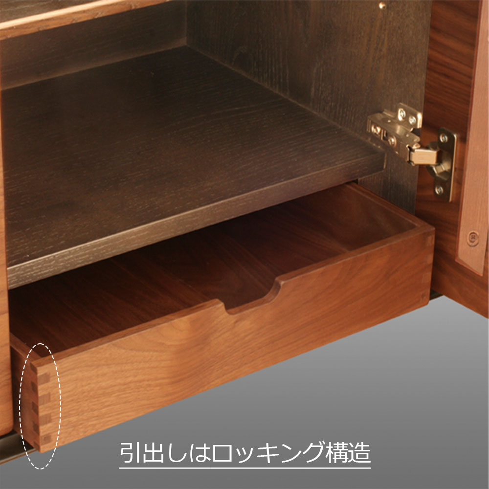 ・引出し・・・サイドボード内の引出しはウォールナット材で高級感があり、耐久性に優れたロッキング構造です。