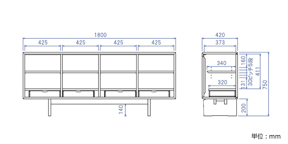 ・背面・・・背面化粧仕上げで、お部屋の間仕切りとしてもお使いいただけます。