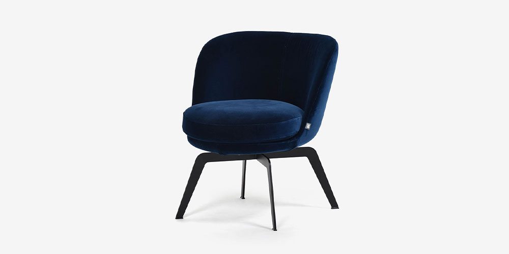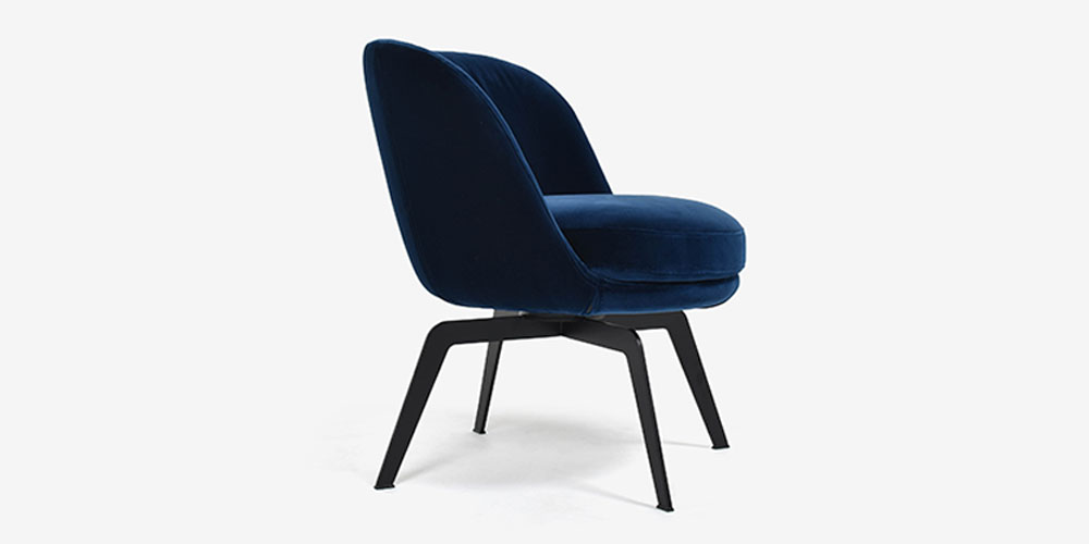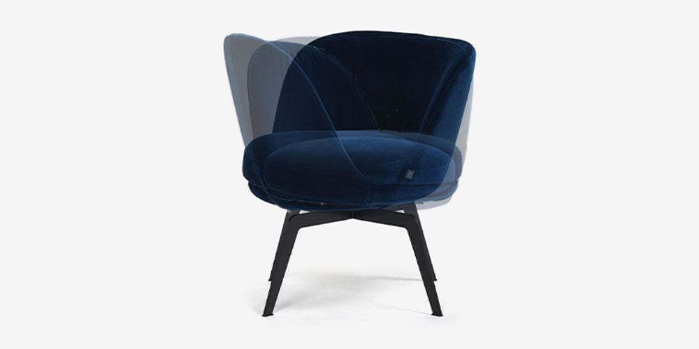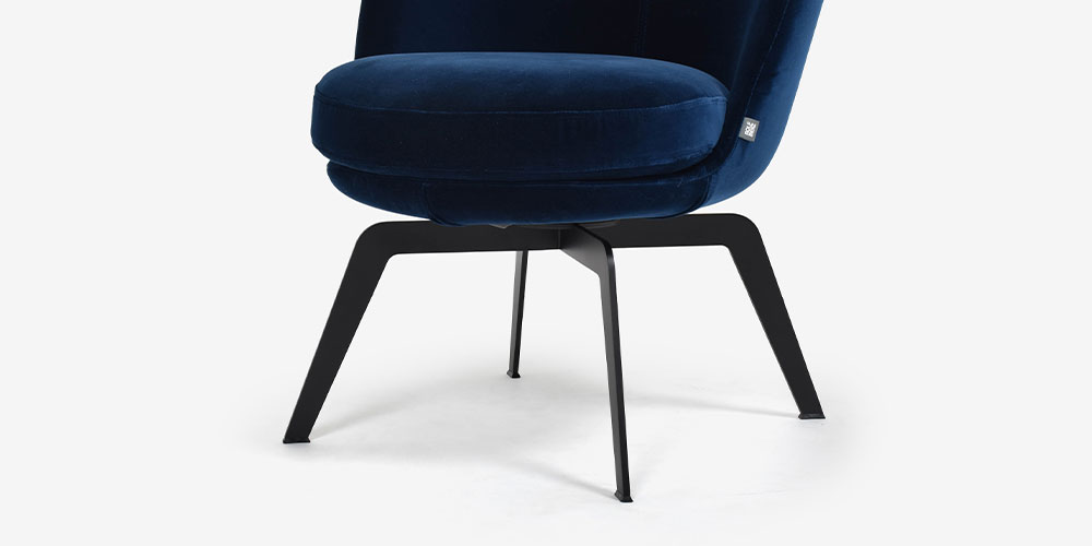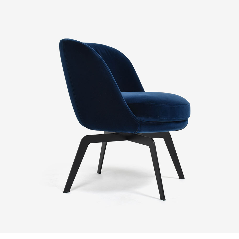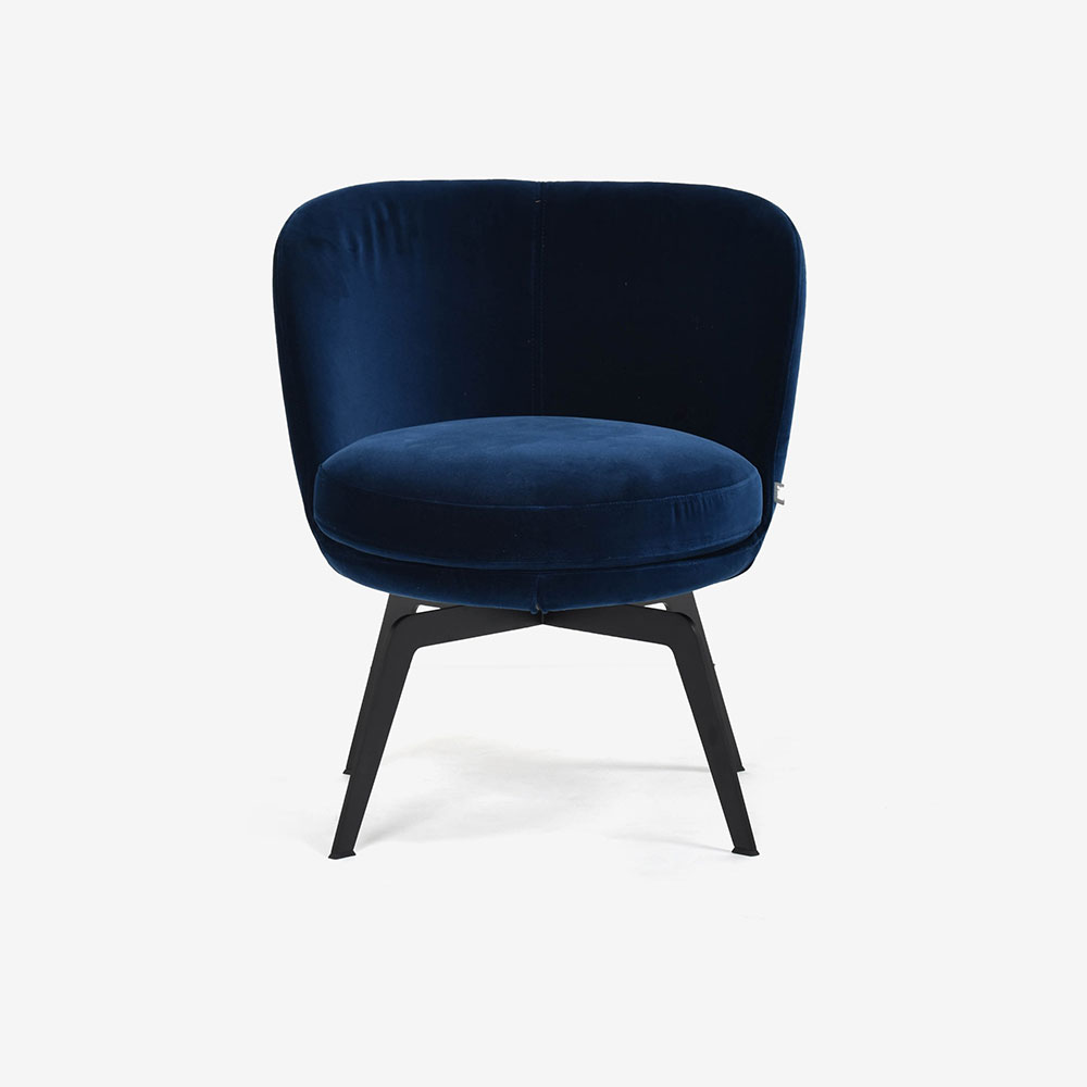 どんな空間にもフィットする回転式ラウンジチェア「562」布ブルーブラック色 / 脚メタルブラック