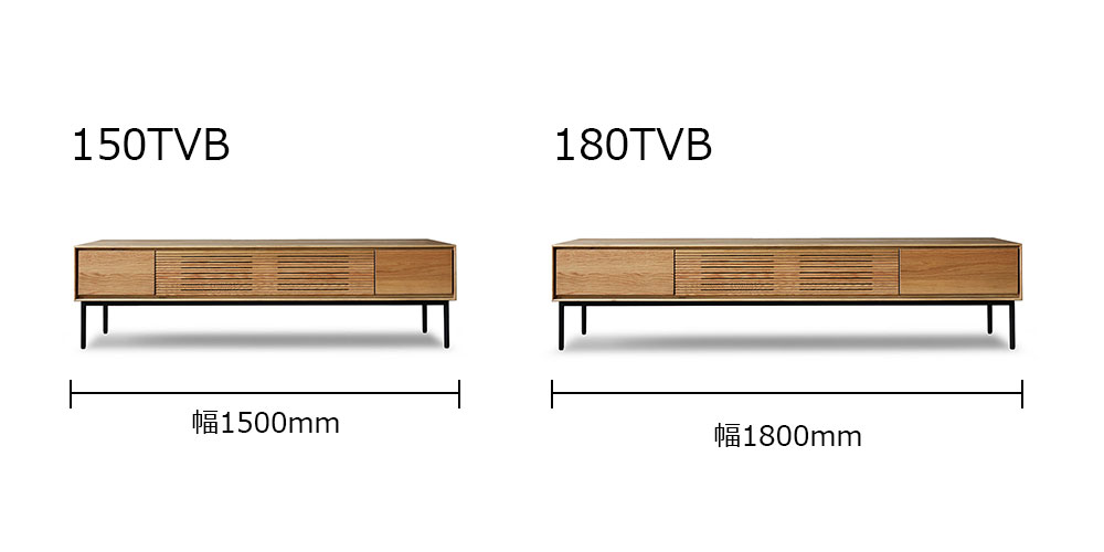 150TVBは〜60V型(幅約125cm)相当。180TVBは〜75V型(幅約168cm)相当におすすめです。