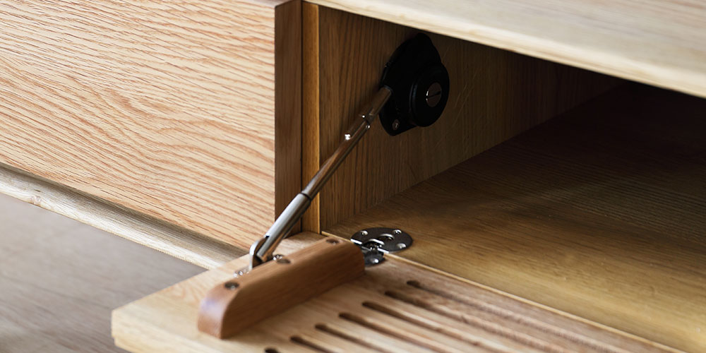 フラップ扉にはゆっくりと開くソフトダウンステーを使用しています。