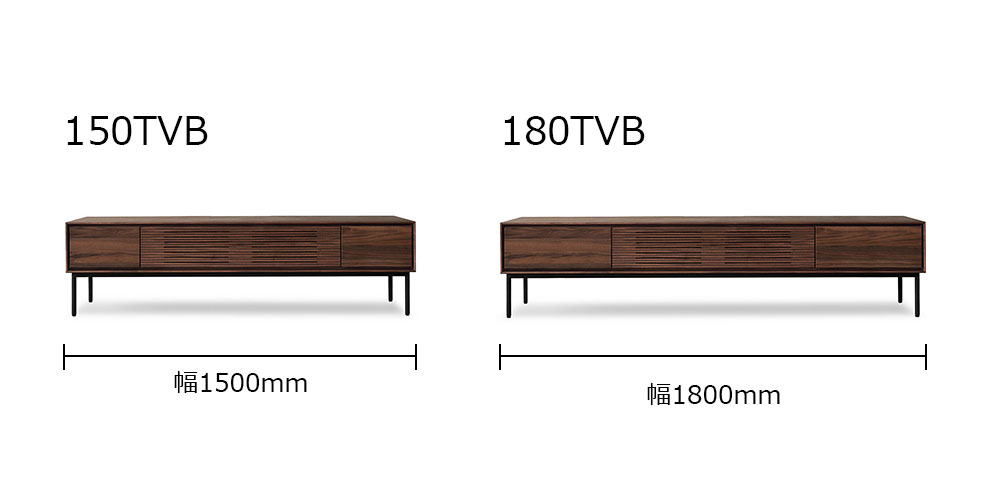 150TVBは〜60V型(幅約125cm)相当。180TVBは〜75V型(幅約168cm)相当におすすめです。