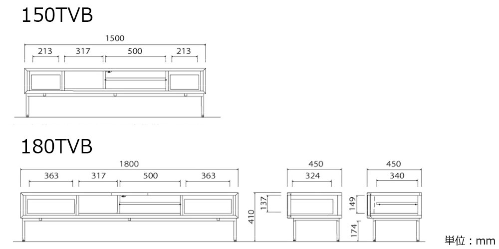 | 180TVB | 幅1800x奥行450x高さ410 |