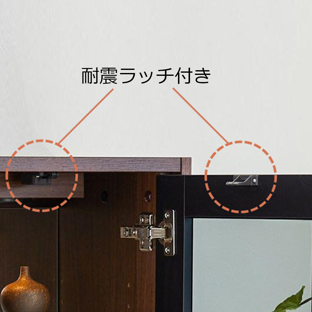 地震などで揺れを感知した際に、扉が開かないようになっています。万が一の時でも安心してご使用いただけます。※キャビネット下扉には付いていません。