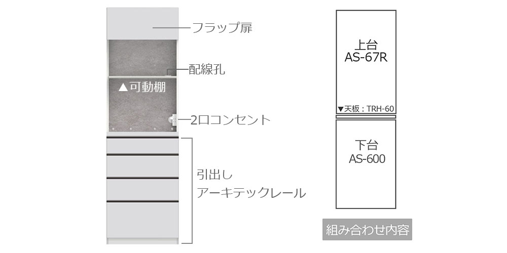 上台:AS-67R、組み合わせ天板:TRH-60、下台:AS-600