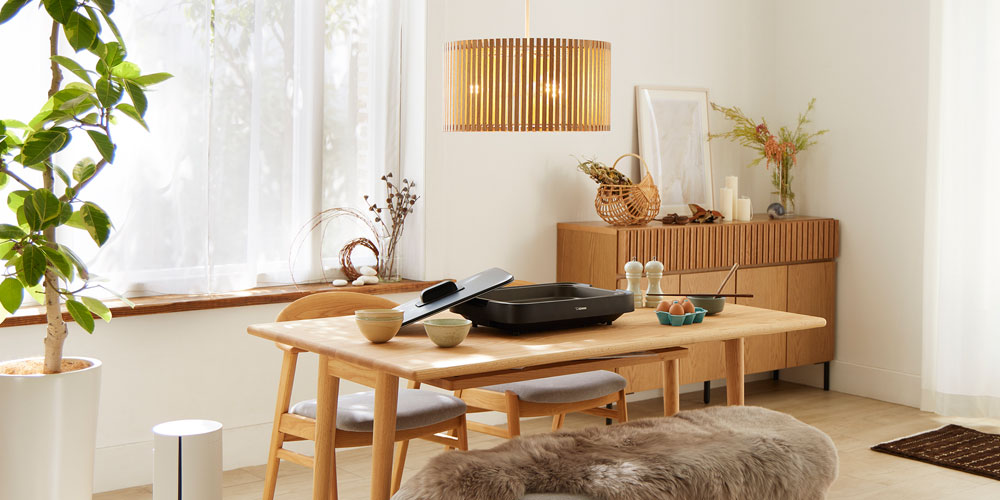 ホワイトオーク材のセードはダイニングでも人気のオーク材家具との相性抜群。木部以外はホワイトやグレーなど無彩色を中心にセレクトし、ポイントで植物のグリーンをちりばめることで、自然の配色をイメージした明るくナチュラルな北欧インテリアです。※画像はイメージです。
