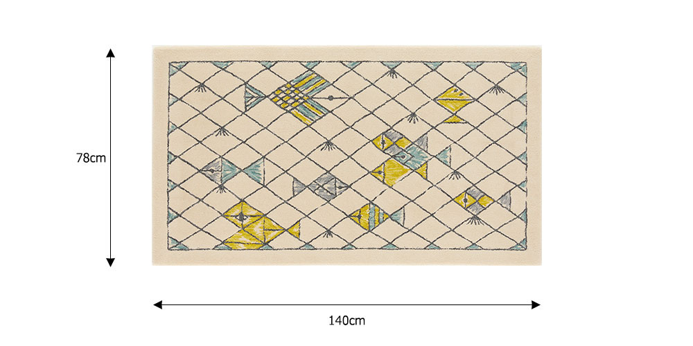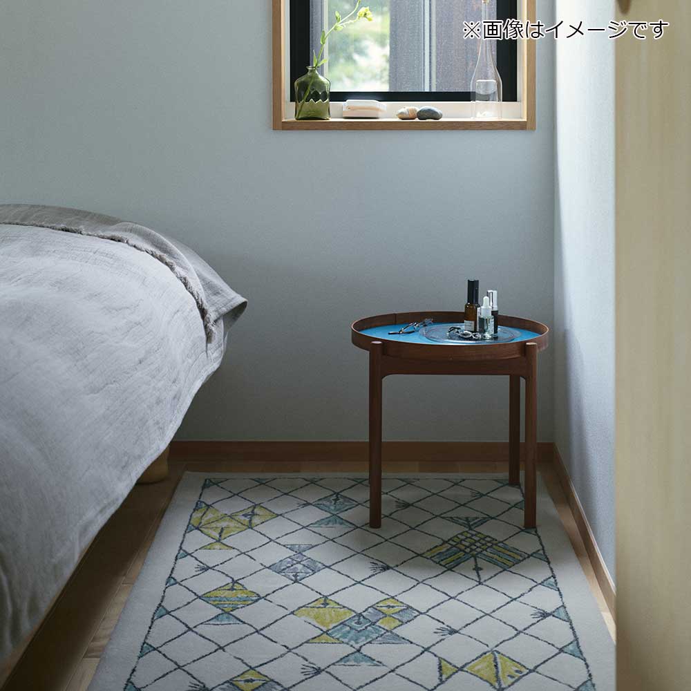 XSサイズより、ひとまわり大きなサイズ。じゅうたんの肌触りや質感を、より広く楽しめます。玄関やベッドサイド、ベランダやテラスの入り口など、人の出入りが多い場所におすすめです。可愛らしい魚たちが明るく楽しい気持ちでお出迎えしてくれます。※画像はイメージです。