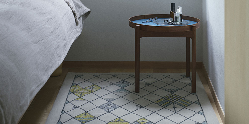 山形緞通は、山形県山辺町で1935年に創業したオリエンタルカーペット社によるブランドです。山形緞通は日本で唯一、糸作りから染め、織り、アフターケアまで、すべてに気を配りながら、職人による一貫生産を行っているメーカーです。素足の生活様式に合わせた日本の絨毯を独自に作り続けています。