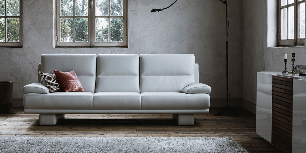 イタリアの大判革を贅沢に使用したモダンなフォルムが印象的なソファです。抱擁感のあるハイバックスタイルとこだわりの構造で、ながく座っても疲れにくい、快適な座り心地を実現しています。