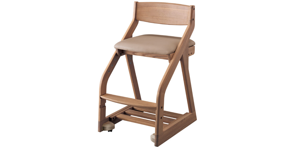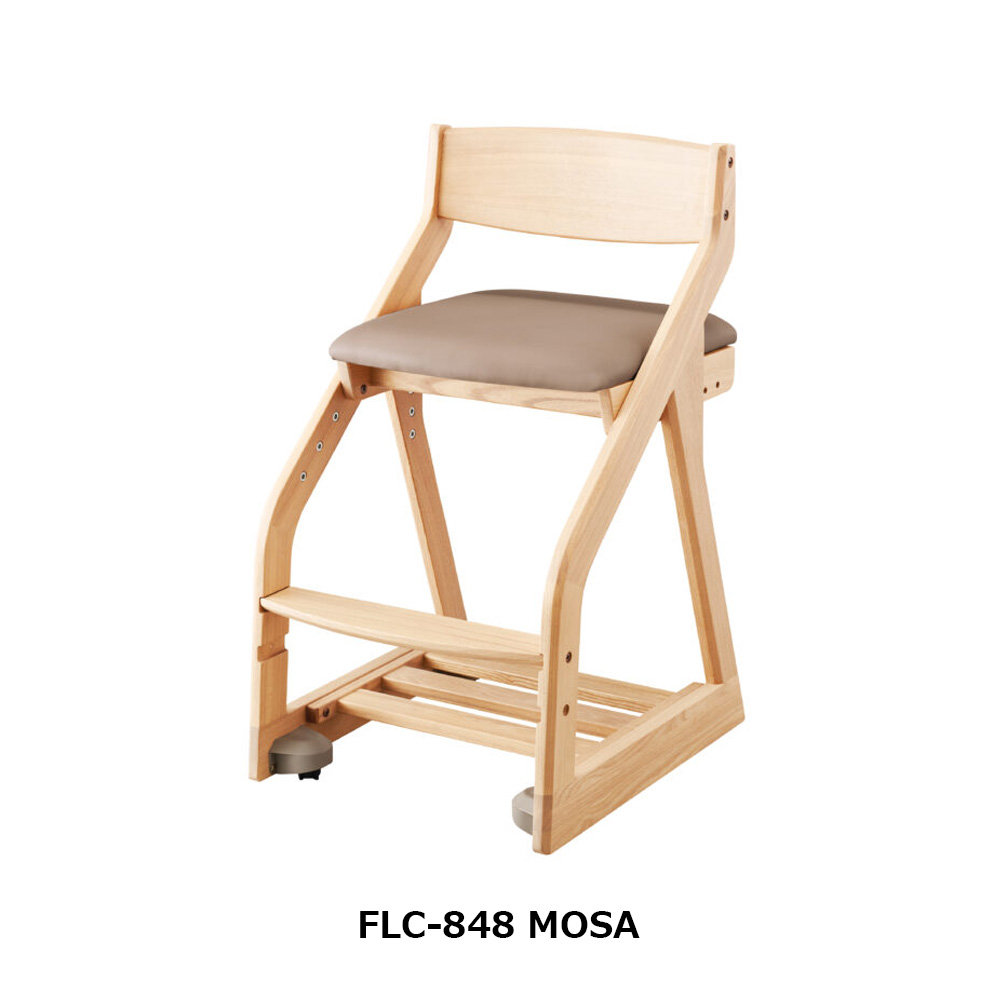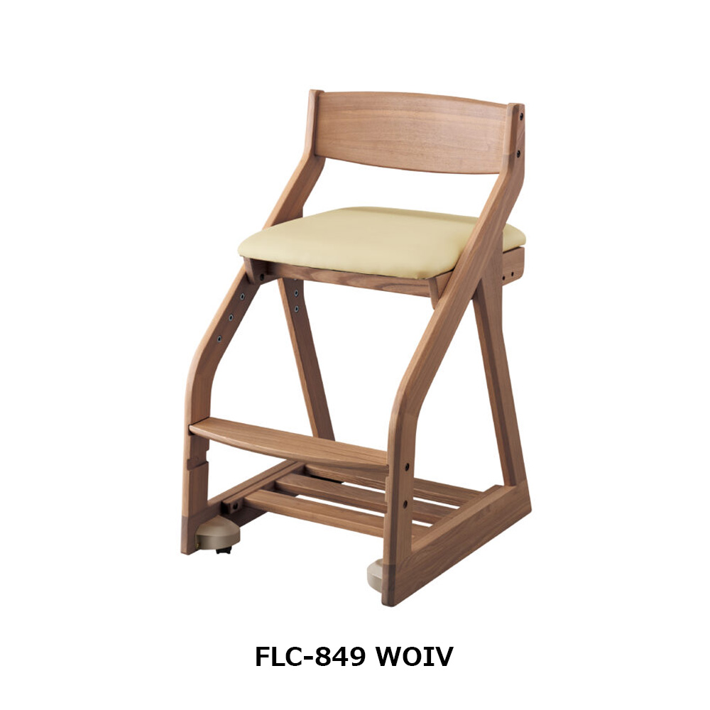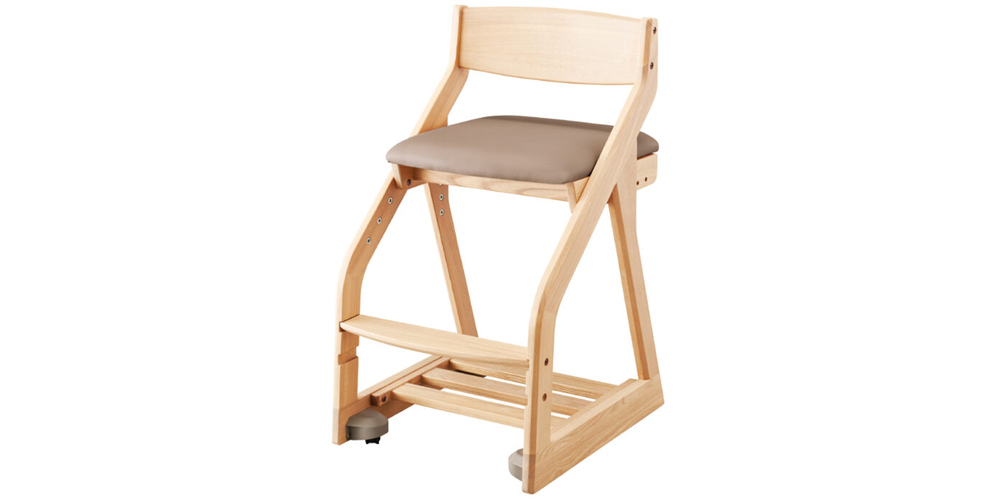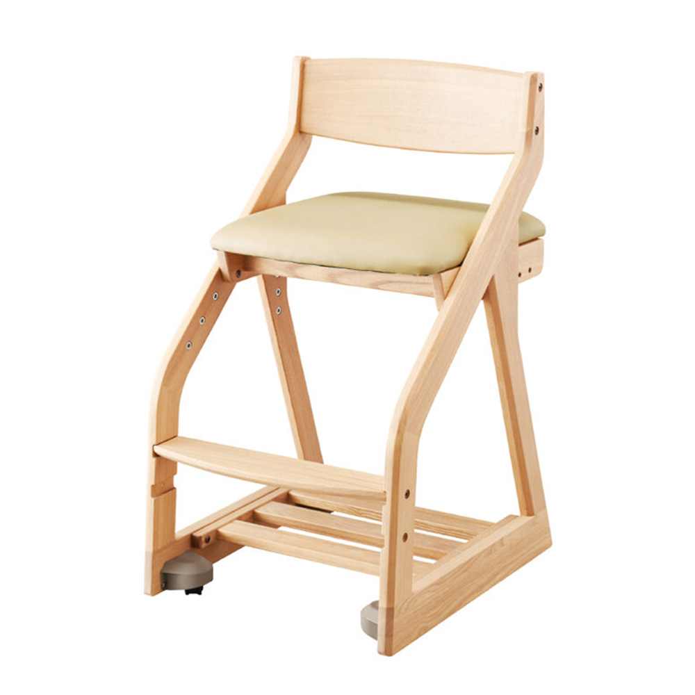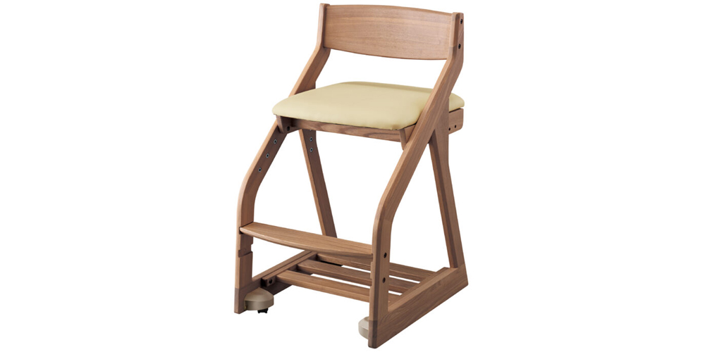 「ファリス」シリーズの学習椅子です。座面高は4段階、足置きの高さは2段階、座面の奥行きは前後最大40mmの調節が可能なので、お子様の成長に合わせてお使いいただけます。座面はPVCレザー張りで、汚れてもお手入れがしやすいです。