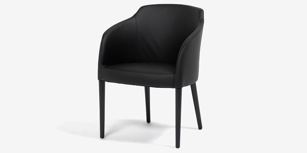 背もたれからアームにかけての美しい曲線が特徴のダイニングチェアです。erba(エルバイタリア)の高い縫製技術と張り込み技術が活かされ、細部に至るまで丁寧に仕上げられています。