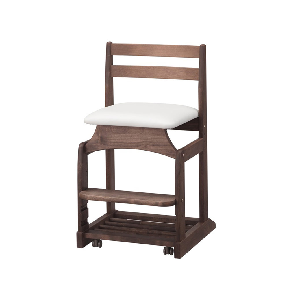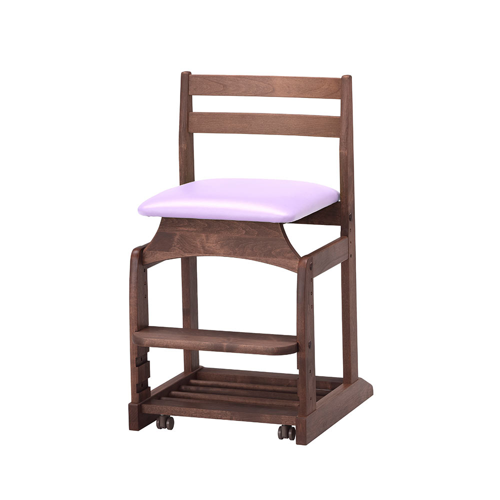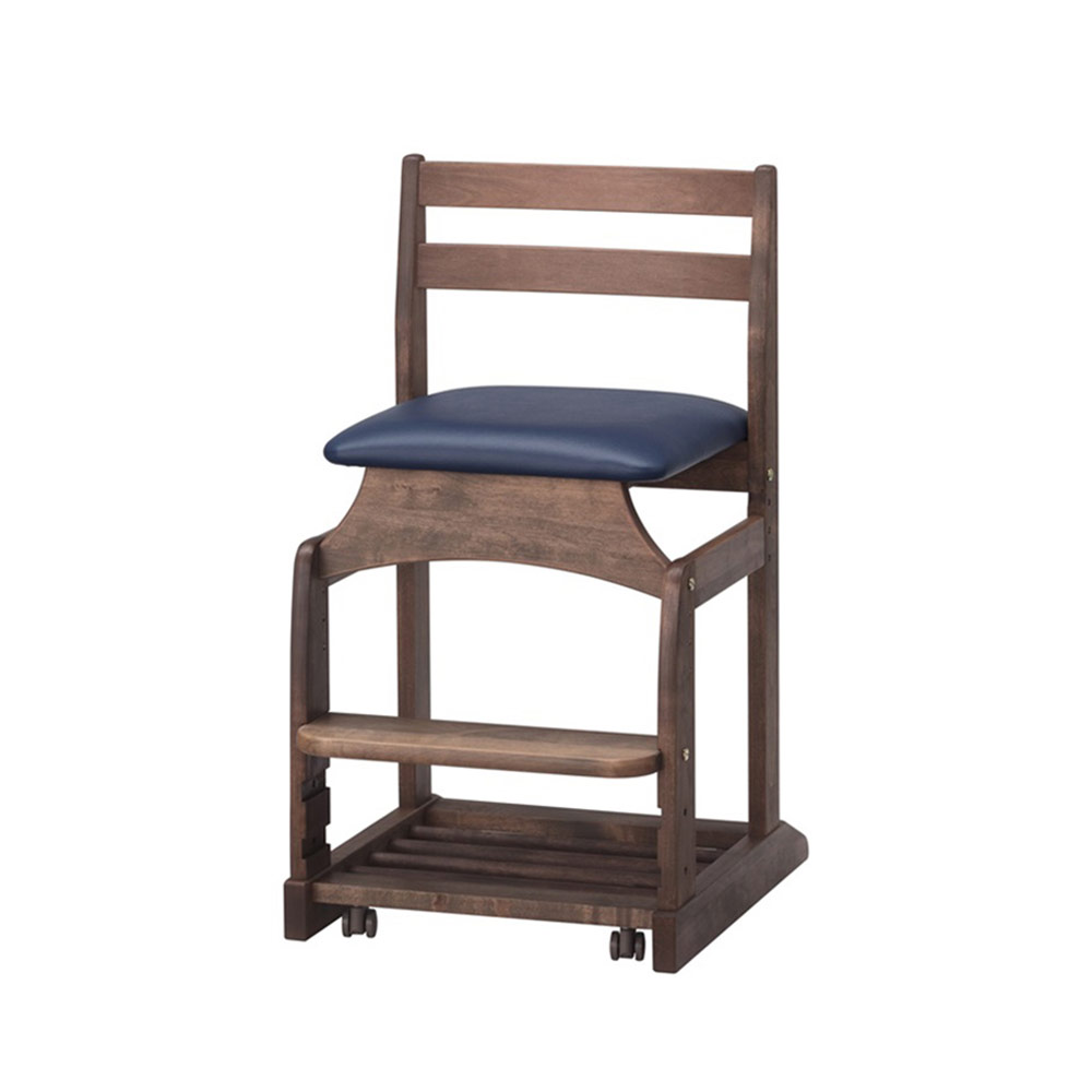 移動しやすい回転キャスターは、座ると沈み込んでストッパーがかかり安定するので、集中して座り続けることができます。座面下部には、ランドセルや道具バッグが置けるすのこラックが設けられています。