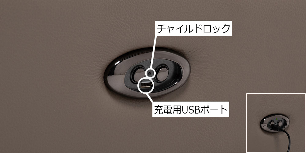 電動スイッチにはチャイルドロックやUSBポート付き。くつろぎながらもスマートフォンやタブレットの充電も可能です。