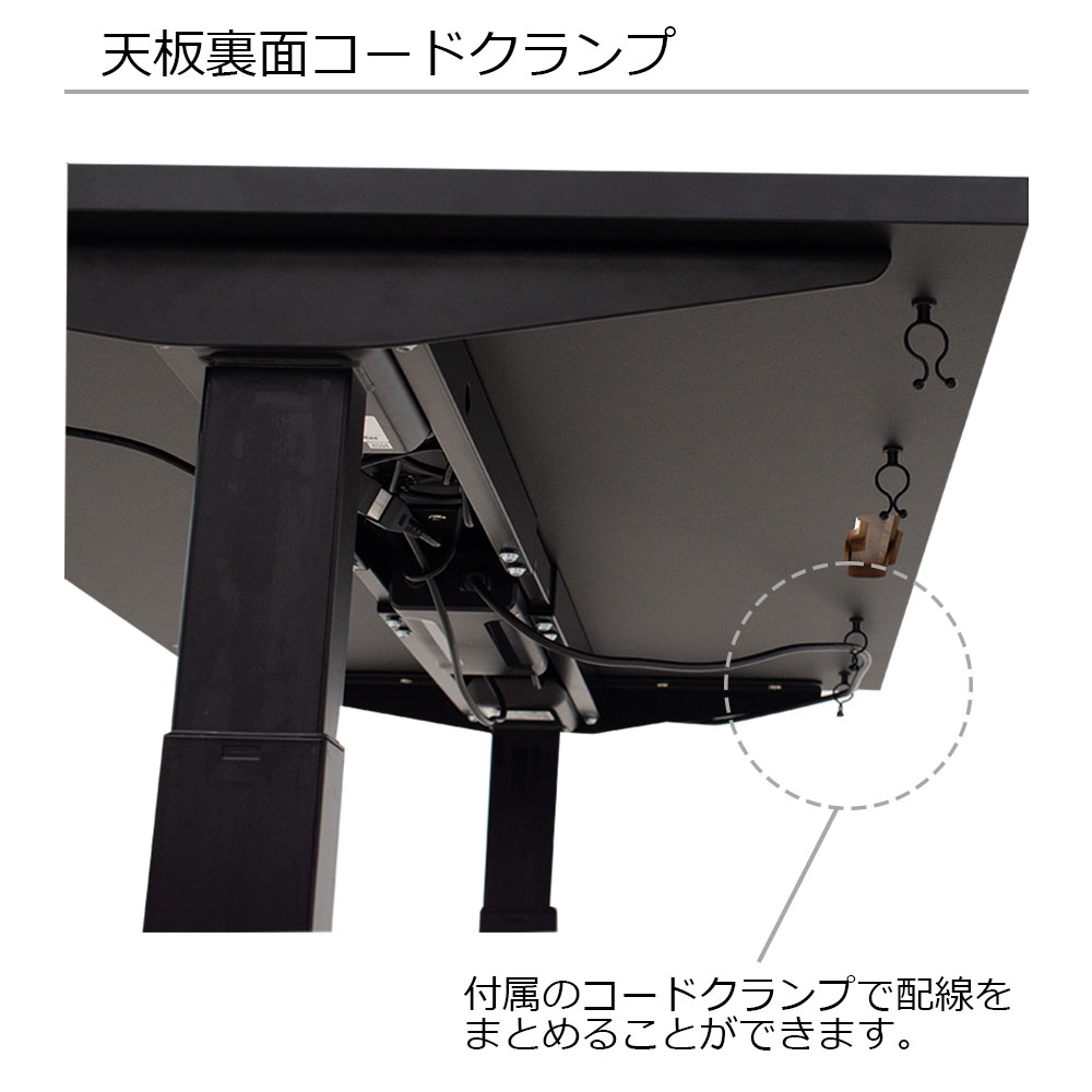 天板裏にはクランプが付いていますので、配線をきれいにまとめることができます。