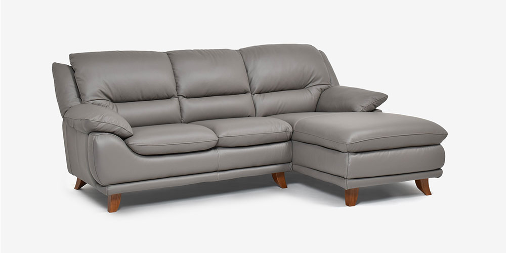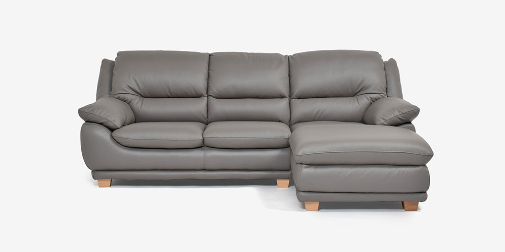 カウチソファ 向って右カウチ「オースチンKD」幅227cm 革#H/S-042E エレファントグレー色 脚部全6種類