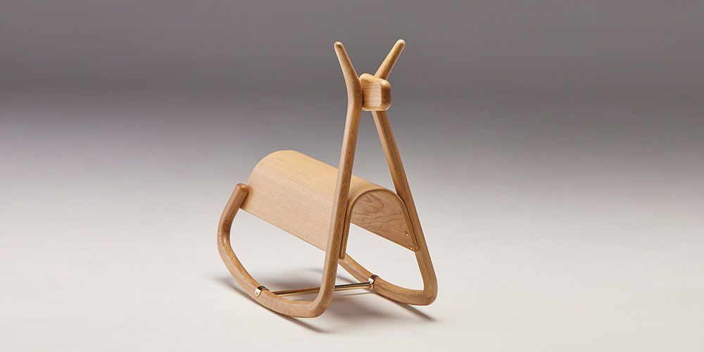小林幹也デザイン×秋田木工の曲木技術が活きるモダンなロッキングホース「AA1」