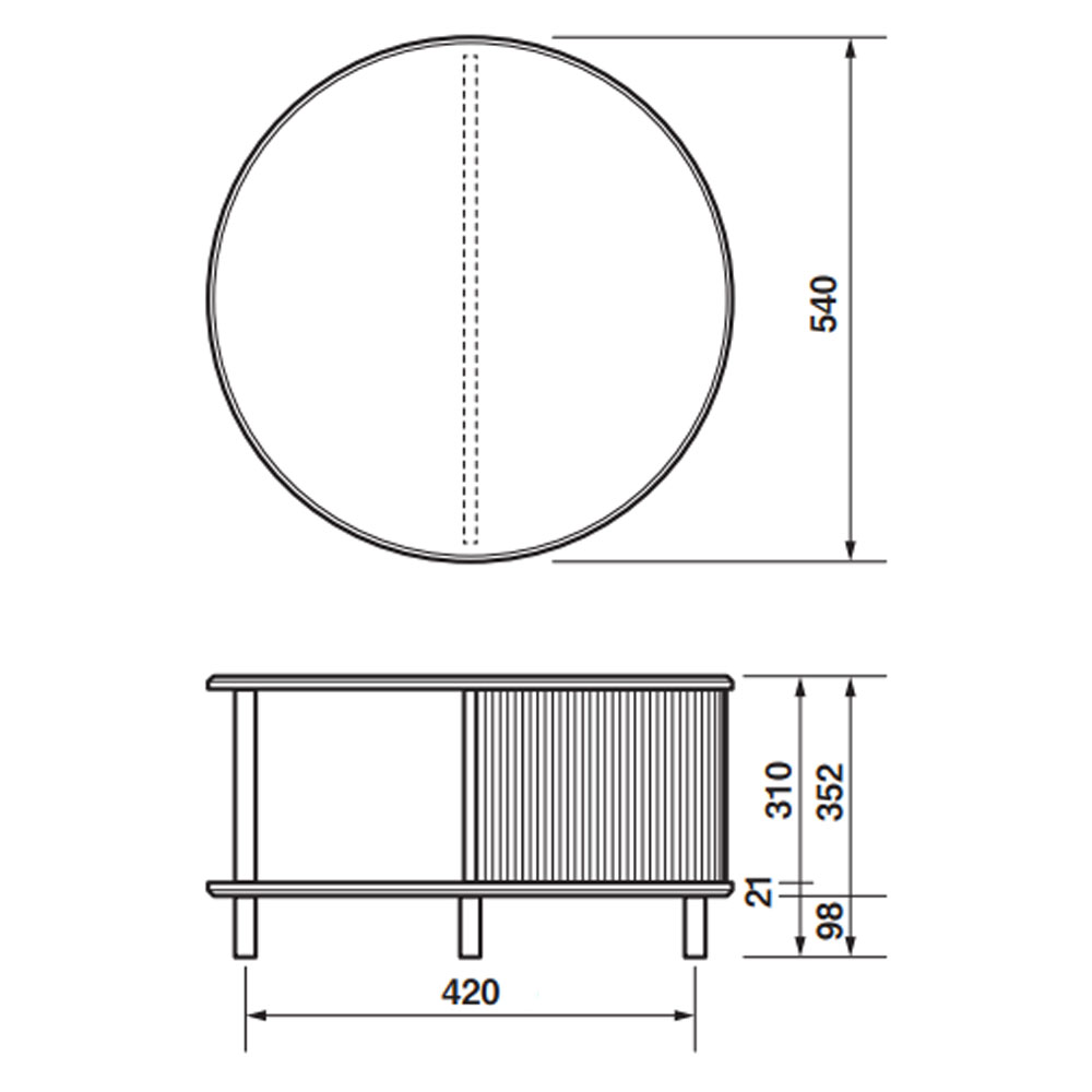 ジャバラ扉の円形リビングテーブル「JYABARA ジャバラ ラウンドテーブル」丸54?
