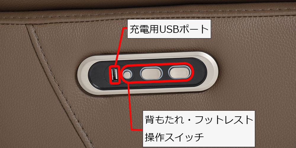 本体側面に操作用スイッチがあります。スイッチ部分には充電用のUSBポートも付属しています。