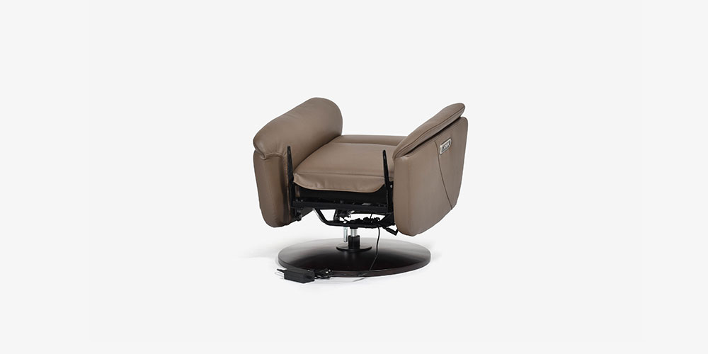 背もたれとフットレストがそれぞれ独立して稼働し、お好みのポジションでくつろげる電動リクライナーです。バケットシートのような形状の背もたれがホールド感のある座り心地を生み出します。