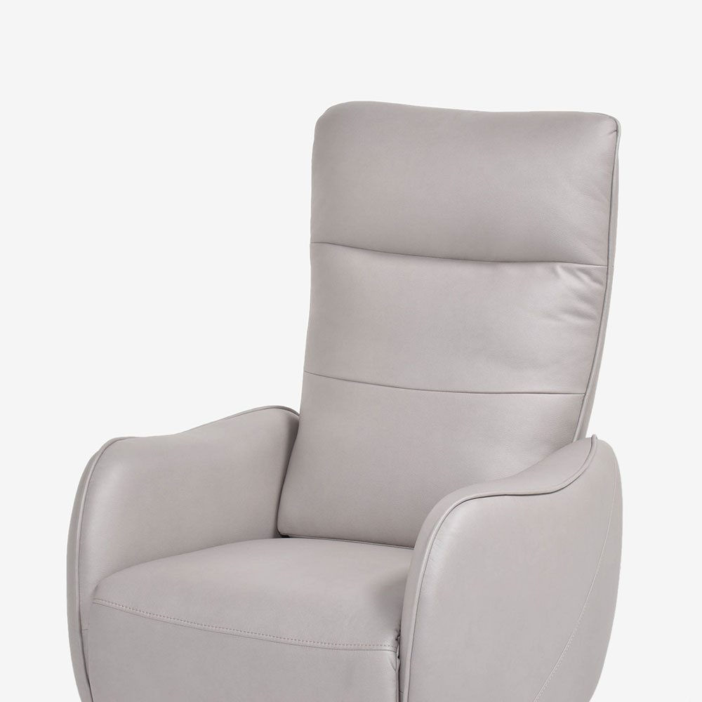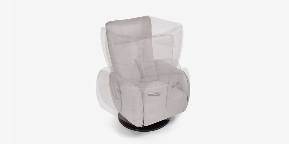 背もたれとフットレストがそれぞれ独立して稼働し、お好みのポジションでくつろげる電動リクライナーです。随所に曲線を活かしたシンプルなデザインが特徴です。