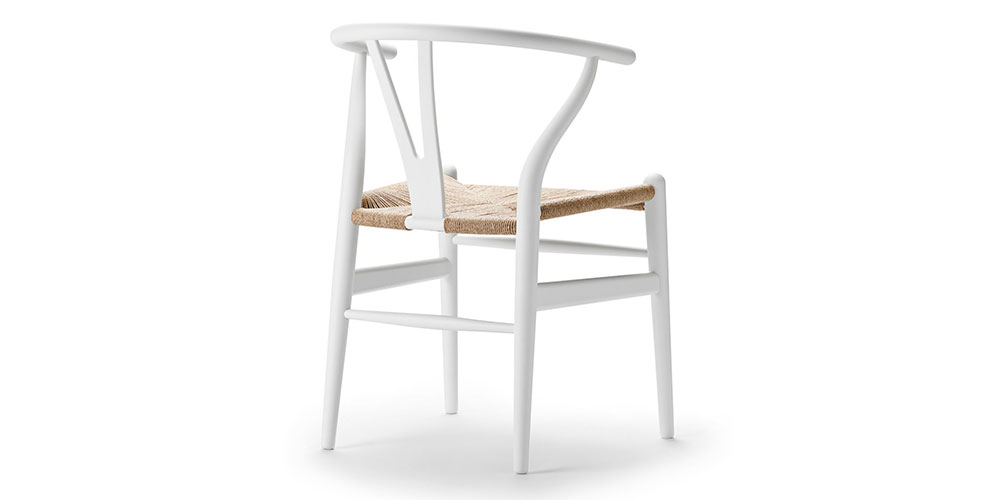 CH24はアームと背もたれを一体にするという、それまでの椅子デザインに見られなかった斬新なデザインです。そしてこの曲木製のアームに安定性と心地よい使用感を与えるのが、印象的なY字形の背もたれ。この形状からYチェアと呼ばれるようになりました。
