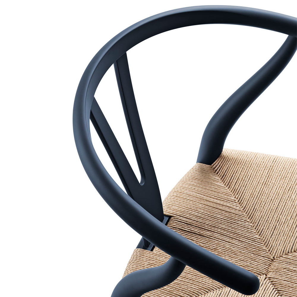 CH24はアームと背もたれを一体にするという、それまでの椅子デザインに見られなかった斬新なデザインです。そしてこの曲木製のアームに安定性と心地よい使用感を与えるのが、印象的なY字形の背もたれ。この形状からYチェアと呼ばれるようになりました。