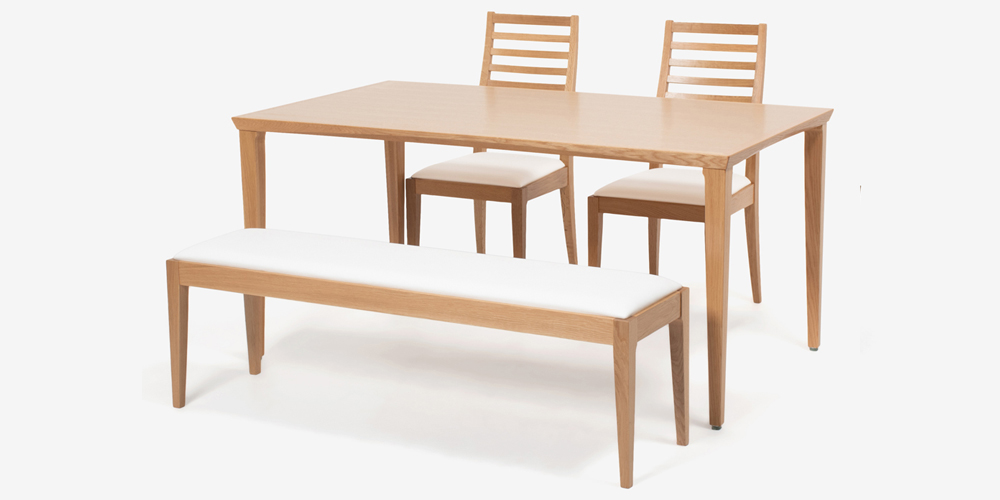 秋田木工 ダイニングセット テーブル「N-T005」+チェア「N005」+ベンチ「N005」ナラ材ホワイトオーク色 全2サイズ