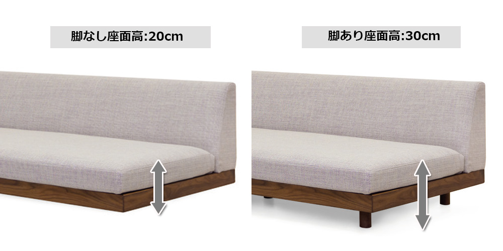 ロボット掃除機に対応する高さの脚は簡易的に脚を取り外すことができ、シート高20cmのより低いソファとしてお使いいただけます。 床に近い生活を送りたい方や、冬場のこたつに合わせて使用したい方におすすめです。