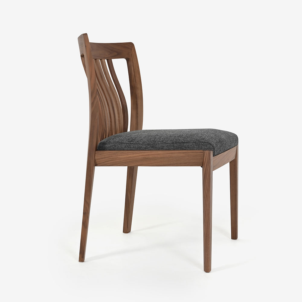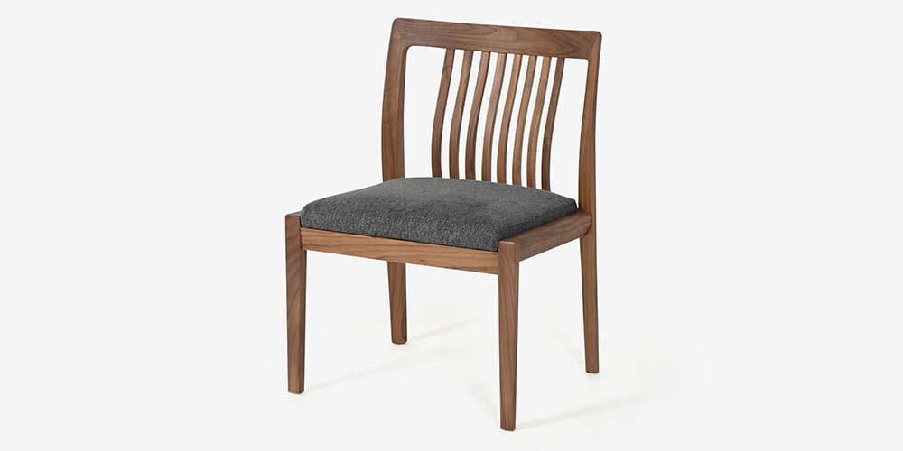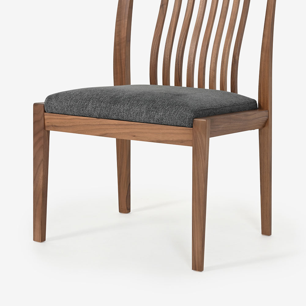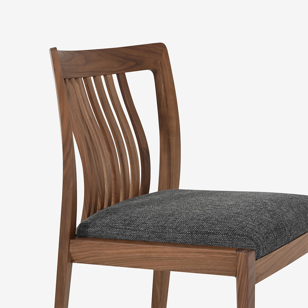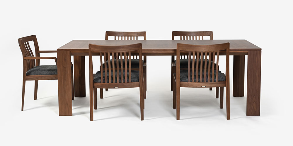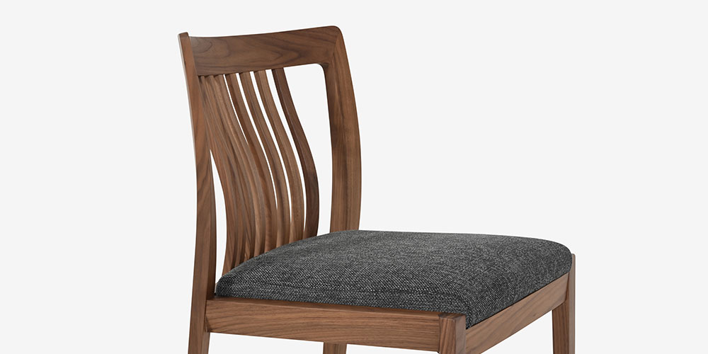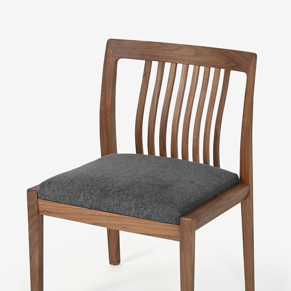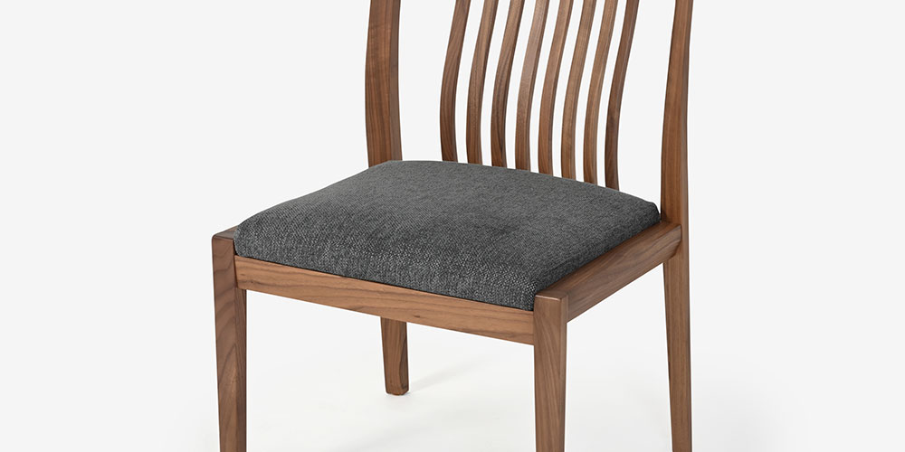 ウォールナットの質感を最大限に引き出す為にあえて薄く仕上げた座面には、4層の異なるウレタン+布バネの多層構造を用い、しなやかに身体を受け止めます。
