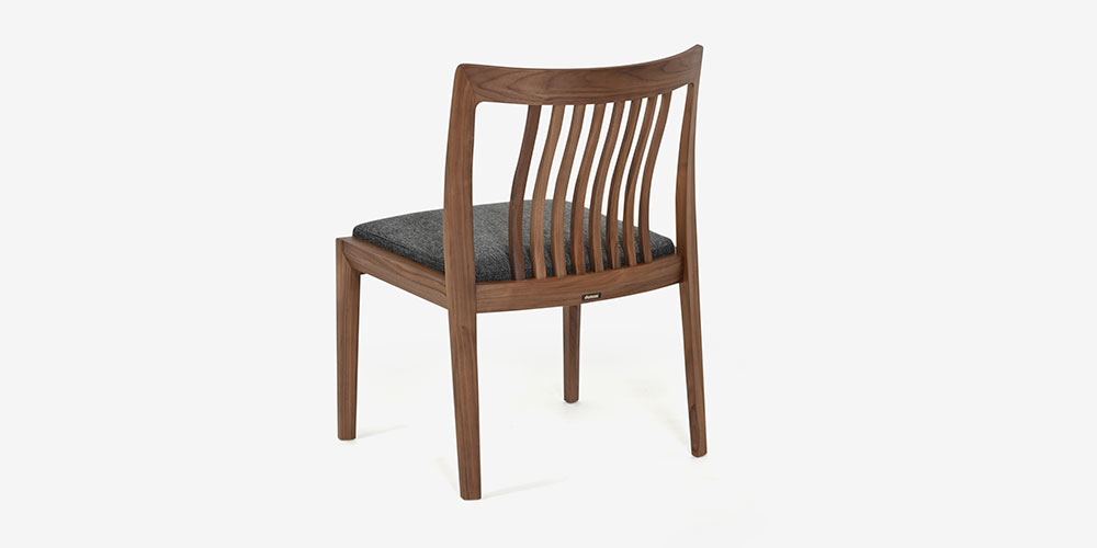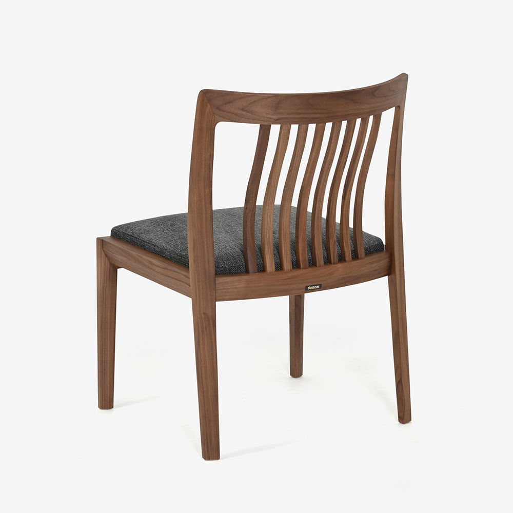 背中を優しく支えるこだわりの背もたれと、無垢材を贅沢に使用した3D形状の後ろ脚が生み出す、大胆かつ繊細なフォルム。シンプルな中に匠の技が活きる、日本のものづくりを表現したとも言えるチェアです。