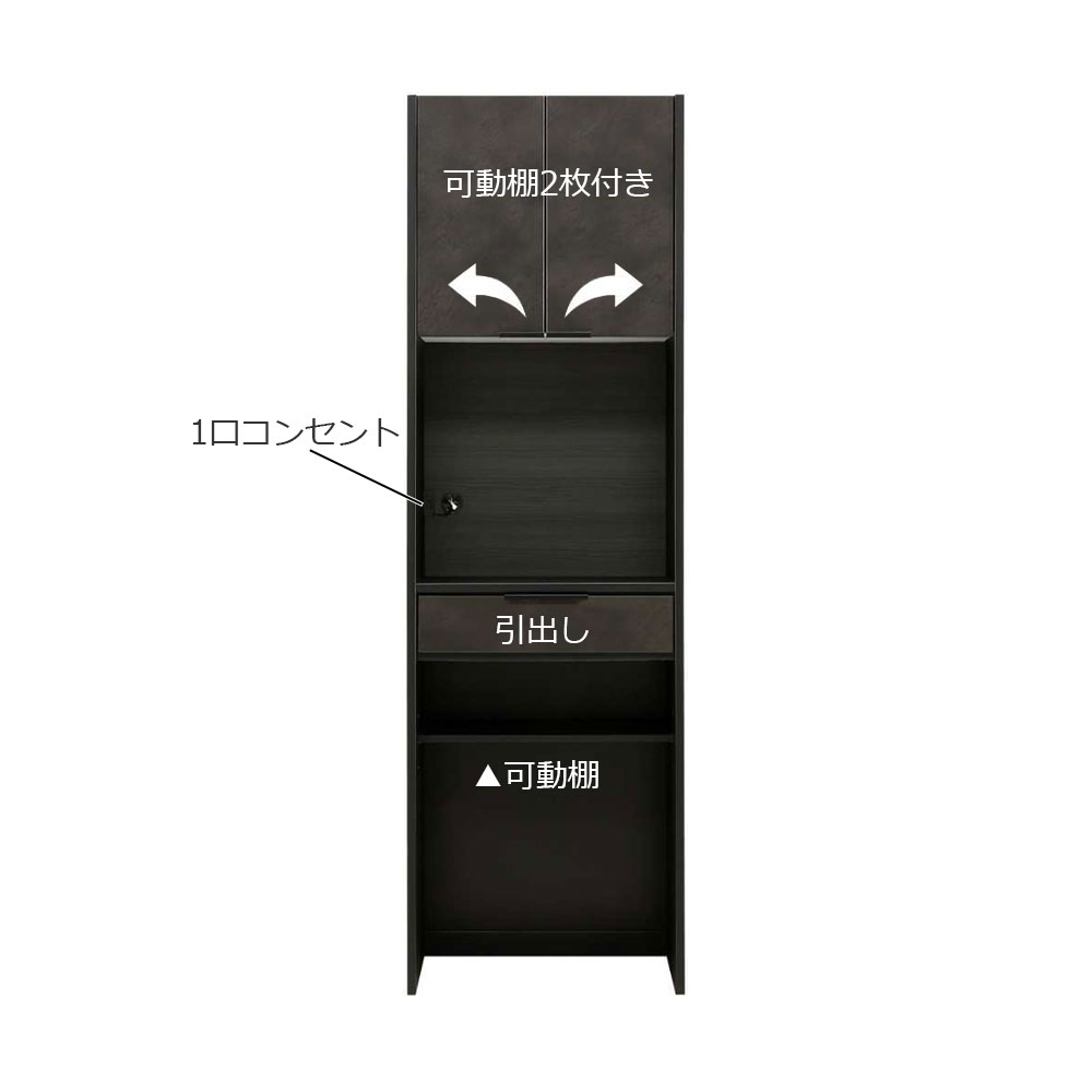 オーブンレンジや炊飯器などの外部に蒸気や熱を放出する物を収納する場合は、ご使用になる家電製品の取り扱い説明書に従ってください。