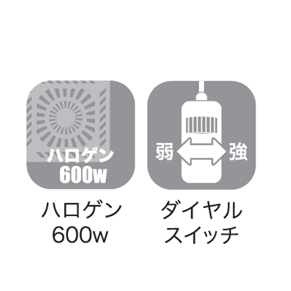 即熱・即暖に優れた600Wのハロゲンランプを使用したヒーターは薄型で横から見ても目立ちにくく、冬場以外でも気にせずご使用いただけます。