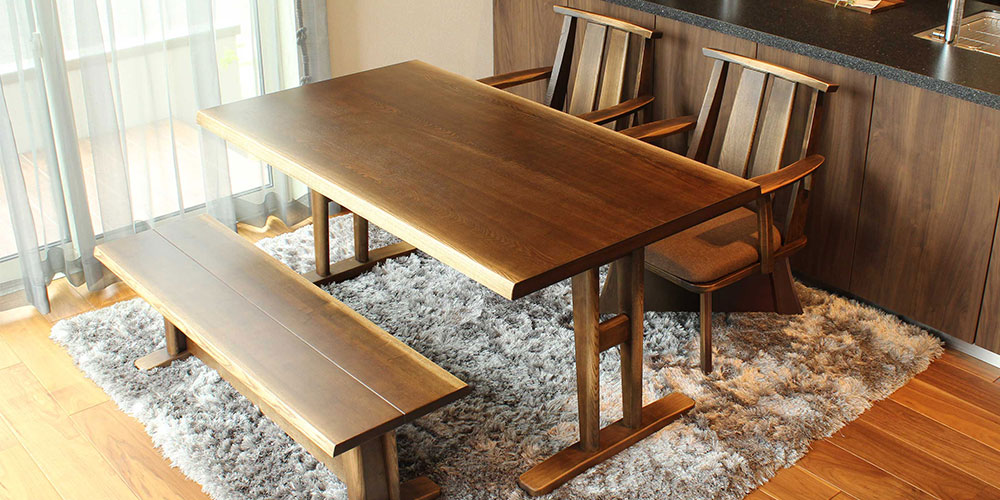 テーブル、ベンチ、椅子2脚、こたつ布団の5点セットです。天然木を使用した天板は温かみを感じる和の雰囲気です。