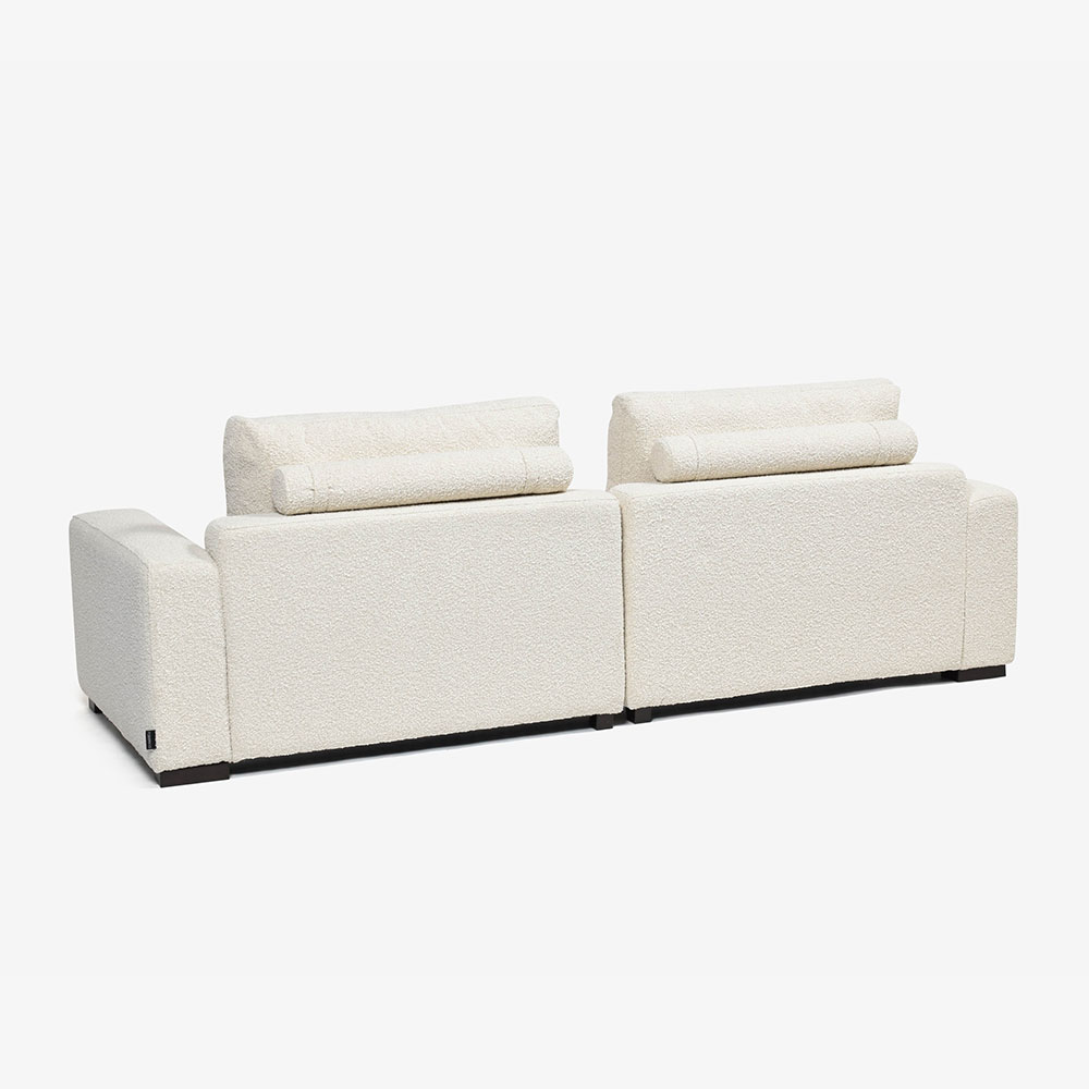 表面に糸の輪っかがでるように加工されたファブリック「ブークレ」素材のモコモコとした肌触りが魅力です。大小様々なループが柔らかな表情を見せる優しいクリーム色で心やすらぐ空間を演出します。リサイクル素材を一部使用した環境にも配慮したファブリックです。