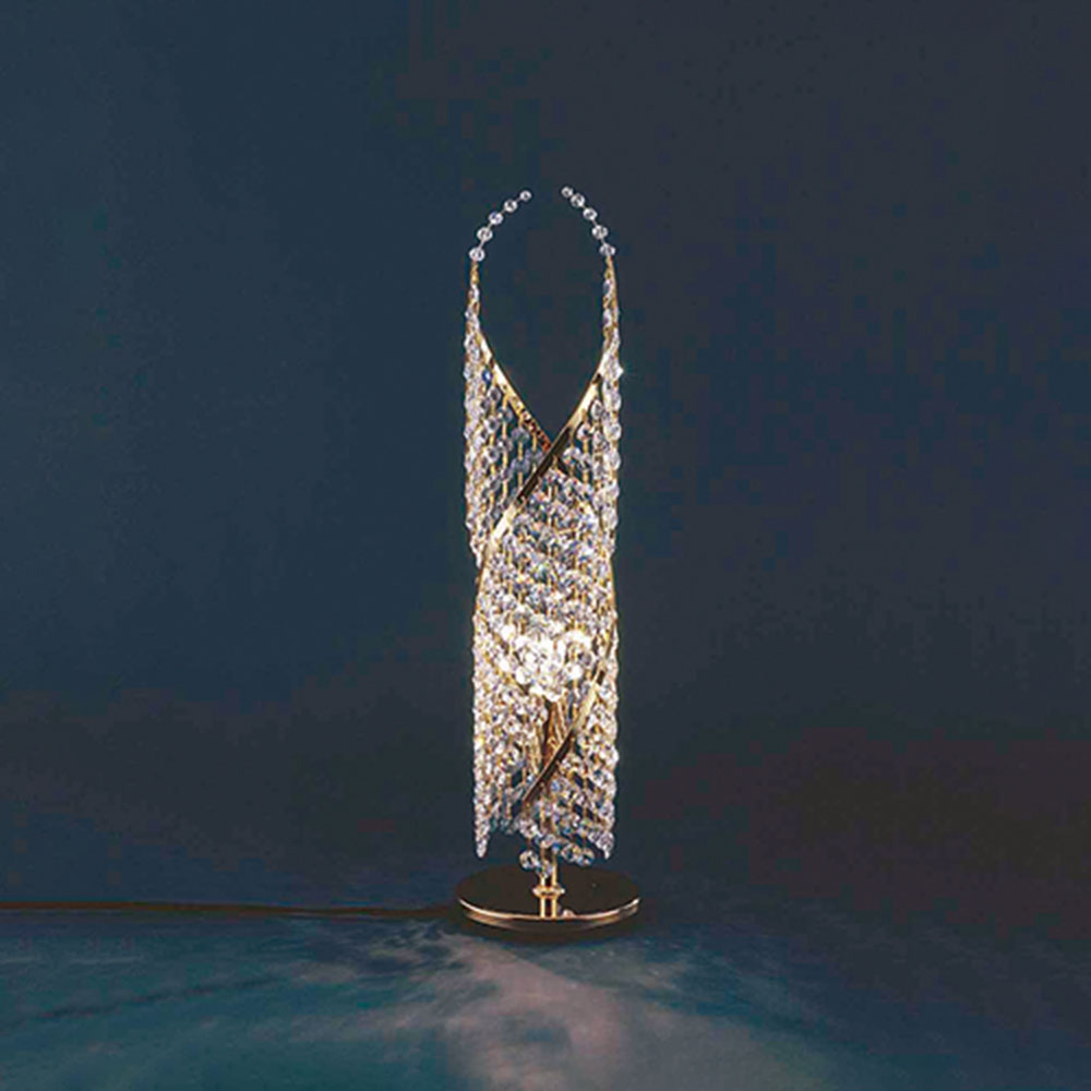 螺旋状のデザインのゴールド色のフレームにショーラー社製のクリスタルビーズを取付けたテーブルスタンドです。輝くクリスタルビーズがお部屋を華やかに演出してくれます。