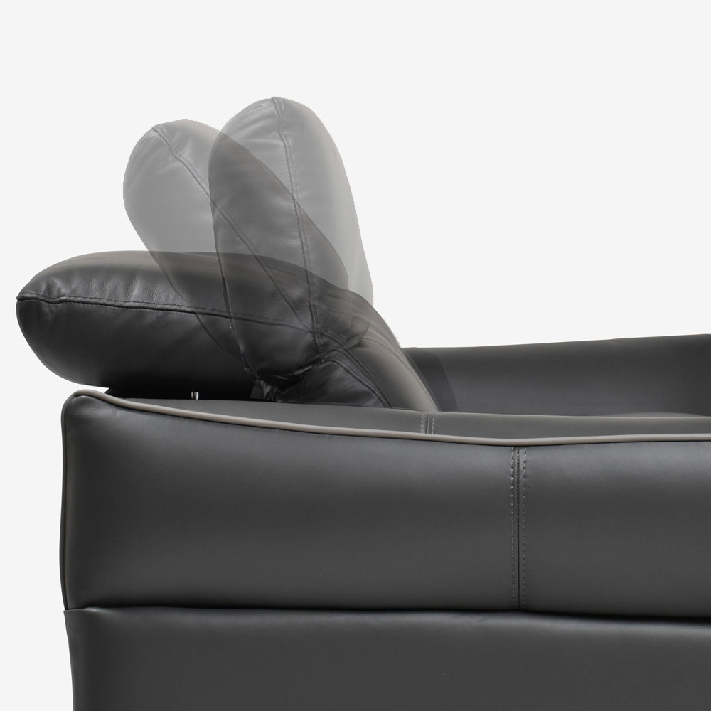 リッチな質感の本革を贅沢に使用した電動リクライニングソファです。リクライニング機能に加えヘッドレストの角度調節でその日の気分や過ごし方に合わせた姿勢でくつろぐことができます。