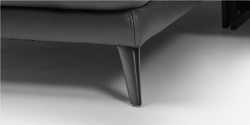 ブラックニッケルのスチール脚が総革の張地と相まって高級感の漂うフォルムです。脚部の高さは約13cmあるので、床とソファの間に空間ができ、ボリュームのあるソファながらすっきりとした印象を与えてくれます。