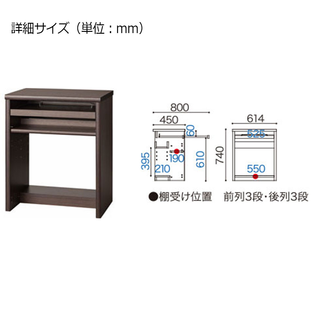 幅614X奥行450(スライド天板引出し時800)X高さ740